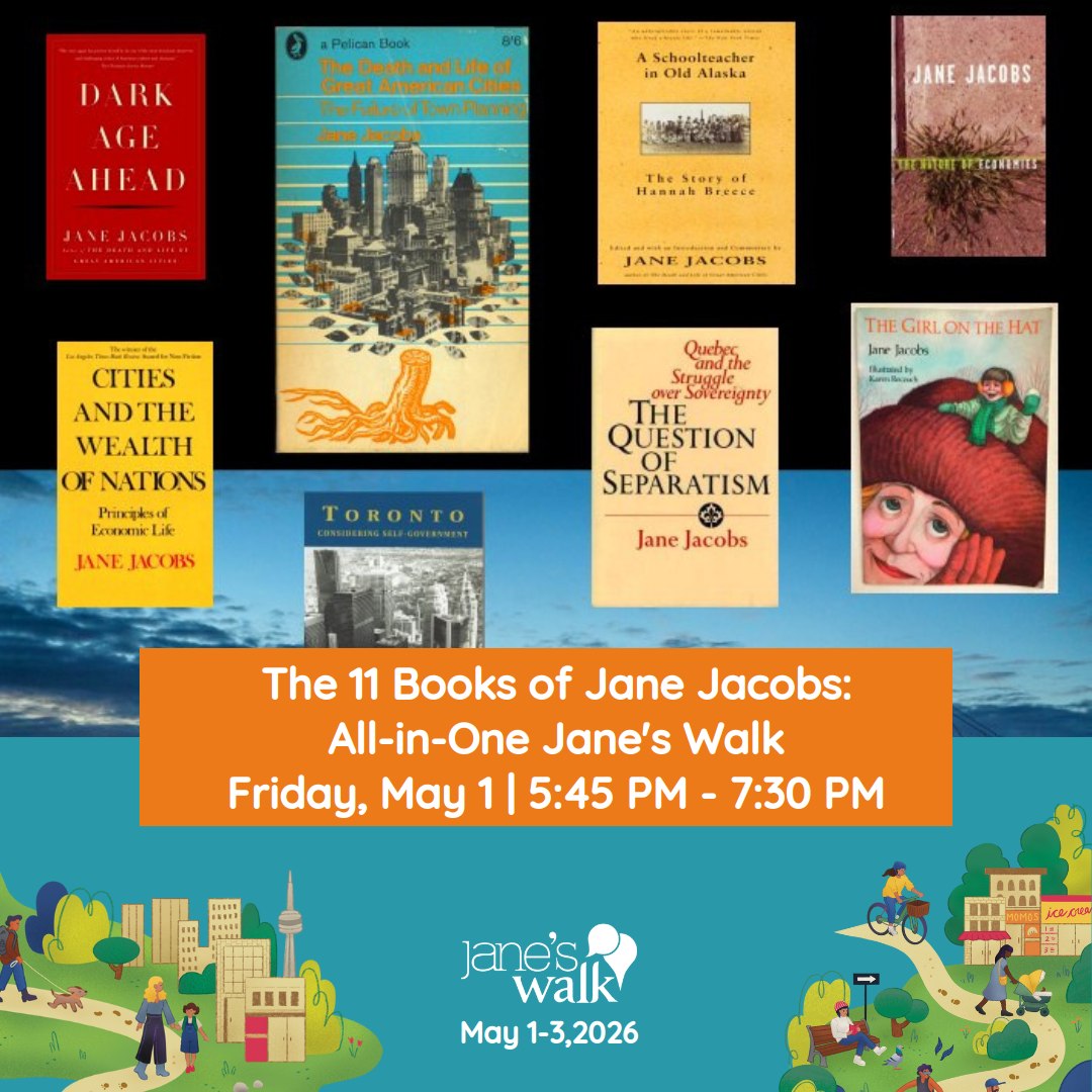 This will be 1 Jane’s Walk covering only the most vital and timely ideas from each of Jane Jacobs’ 11 books.